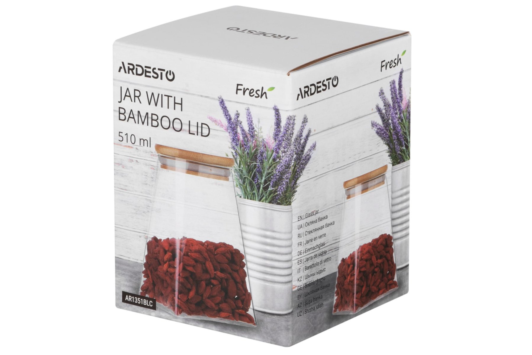 Банка для зберігання Ardesto Fresh, конус, 510 мл, скло, бамбук