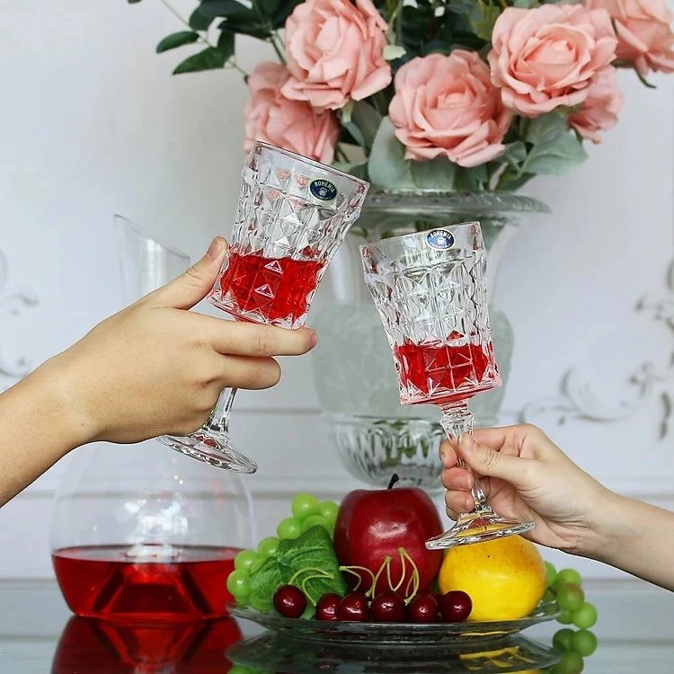 Келихи для вина з колекції Diamond завдяки невисокій чаші з товстим дном і ніжці дають можливість найповніше відчути післясмак цього тонкого напою. Згідно з легендою, форма склянки виникла на Дикому Заході, де віскі користувався величезною популярністю. Заповзятливі власники салунів розпилювали розбиті пляшки навпіл і використовували їх як келихи, знижуючи таким чином збитки від розбитого посуду. Однак з того часу форма склянки дещо змінилася і сьогодні чаша трохи розширюється до верху, а тонкі стінки дозволяють побачити текстуру напою. Якщо погріти такий келих для віскі в руках, це не тільки допоможе звільнити його аромат, а й визначити його щільність та маслянистість. Ви можете бути повністю впевнені у високій якості та екологічності виробів, адже для їх виробництва використовується кришталеве скло, що не містить свинцю. Додатковими ж перевагами є те, що склянки для віскі від Crystalite Bohemia відрізняються більшою міцністю та витонченістю, не жовтіють з часом, але при цьому зберігають унікальні характеристики кришталю – його неповторний дзвін та сяйво.