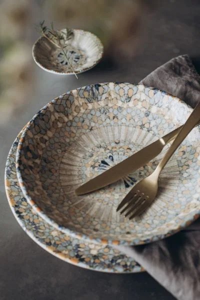 Тарілка Bonna Luca Mosaic виконана з професійної твердої порцеляни. На виробах вручну нанесений декор у вигляді мозаїки. Нанесення декору робиться під глазур, внаслідок чого всі вироби можна мити в посудомийній машині. Стійка до перепадів температури та пошкоджень при щоденному використанні. Підійде для щоденного використання та для сервірування святкового столу.