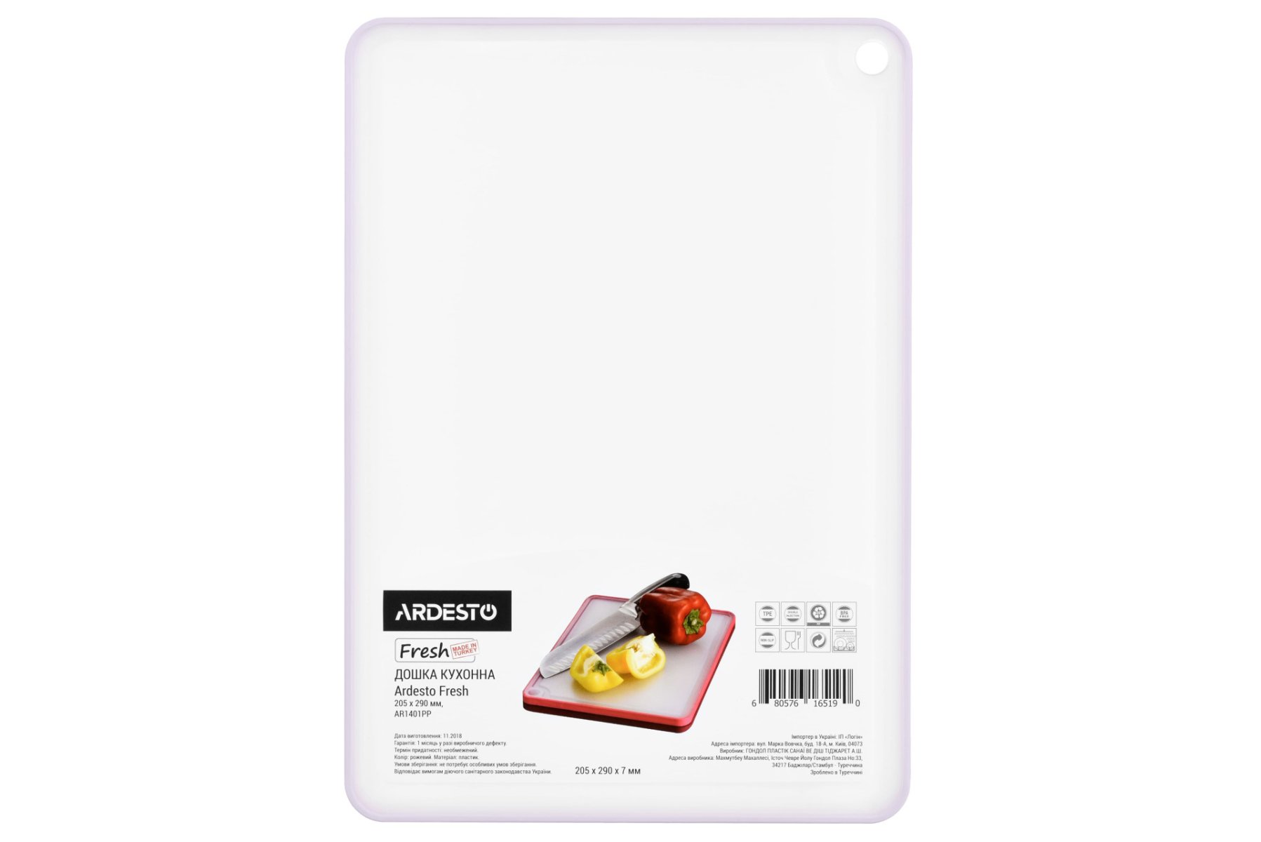 Дошка кухонна Ardesto Fresh, 205х290х7 мм, рожевий, пластик