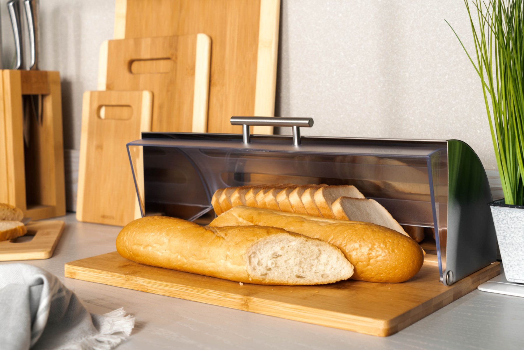 Аби хлібобулочні вироби довше залишалися свіжими й не черствіли, важливо зберігати їх у відповідних умовах. Для цього в пригоді стане хлібниця ARDESTO Gemini. Під час виготовлення виробу використано кілька видів матеріалів: основа з натурального бамбуку, корпус вироблено з нержавіючої сталі, а підйомна кришка – пластикова. Розмір хлібниці – 39 × 28,5 × 15 см, такої ємності достатньо для зберігання кількох хлібин середнього розміру й невеликого багета. Аксесуар постачається в кольоровому картонному пакованні, тож ризик пошкодження під час транспортування мінімальний, та задля спокою покупців виробник також надає гарантію на модель терміном 1 місяць. Товар має необмежений термін придатності, не потребує особливих умов зберігання, проте його не рекомендовано мити в посудомийній машині.