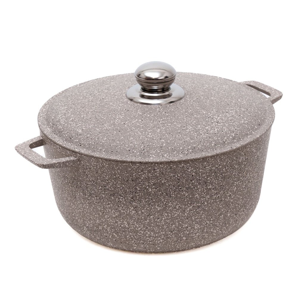 Каструля з потовщеними стінками і дном, алюмінієвою кришкою, Об'ємом 2 літри, виготовлена з алюмінієвого сплаву з нанесенням протипригарного покриття, колір - світло-сірий граніт. Має круглу форму, діаметр - 200 мм, висота стінок - 96 мм, товщина стінок 5 мм,товщина дна 5 мм. Вага нетто -1,260 кг. Комплектується ручкою на кришці.