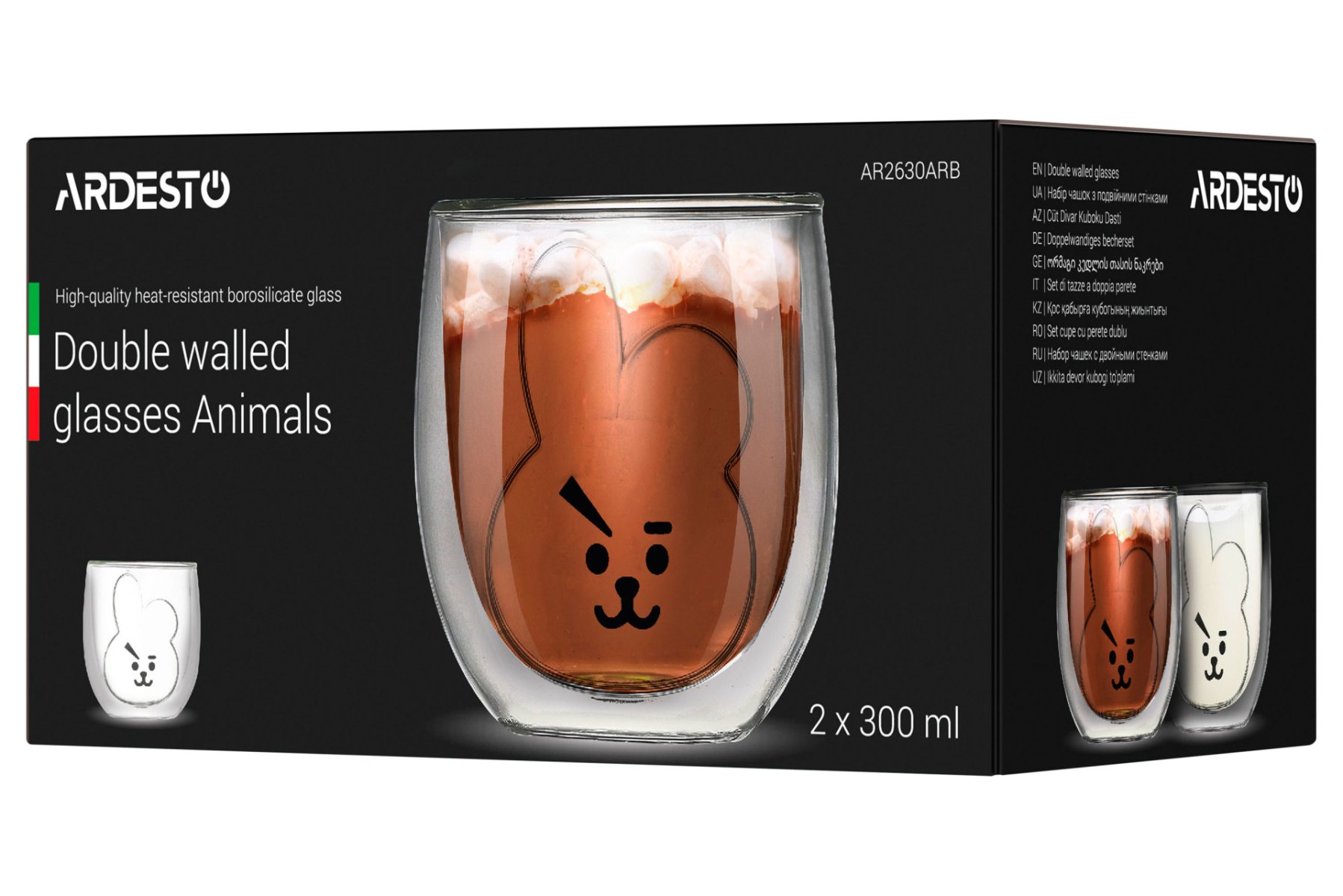 Набір чашок Ardesto Animals з подвійними стінками, 300 мл, 2 од., боросилікатне скло