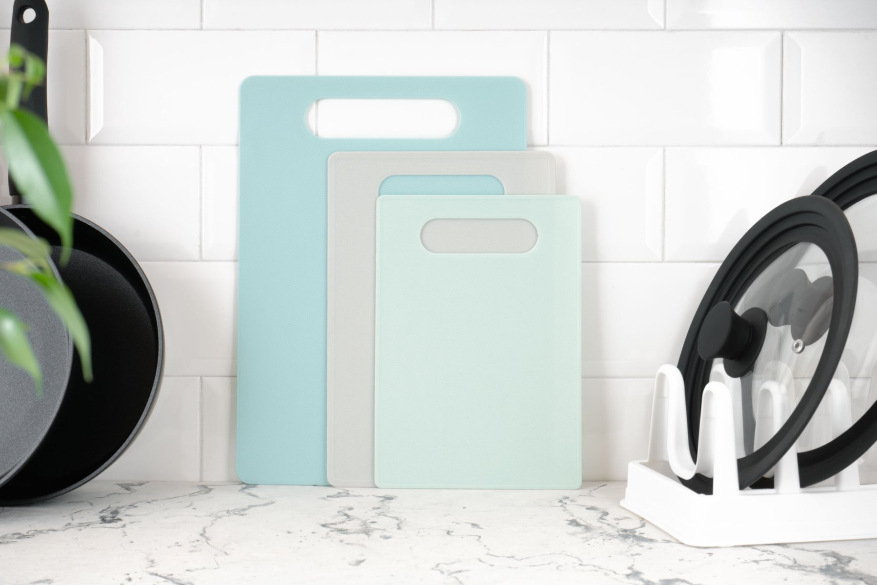 Багато дошок не буває. Під час готування необхідні дошки кількох форм, розмірів і різного призначення, зокрема для риби, м’яса, овочей тощо. У пригоді стане набір дошок ARDESTO Gemini – велика блакитного кольору (35,2 × 24,8 × 0,25 см), стандартна сірого кольору (28,8 × 19,6 × 0,22 см) та середня блакитна (25 × 17,6 × 0,22 см). Вироби мають прямокутну форму, а для зручності передбачено отвір, за нього можна повісити аксесуар на гачок. Дошки можна мити в посудомийній машині.