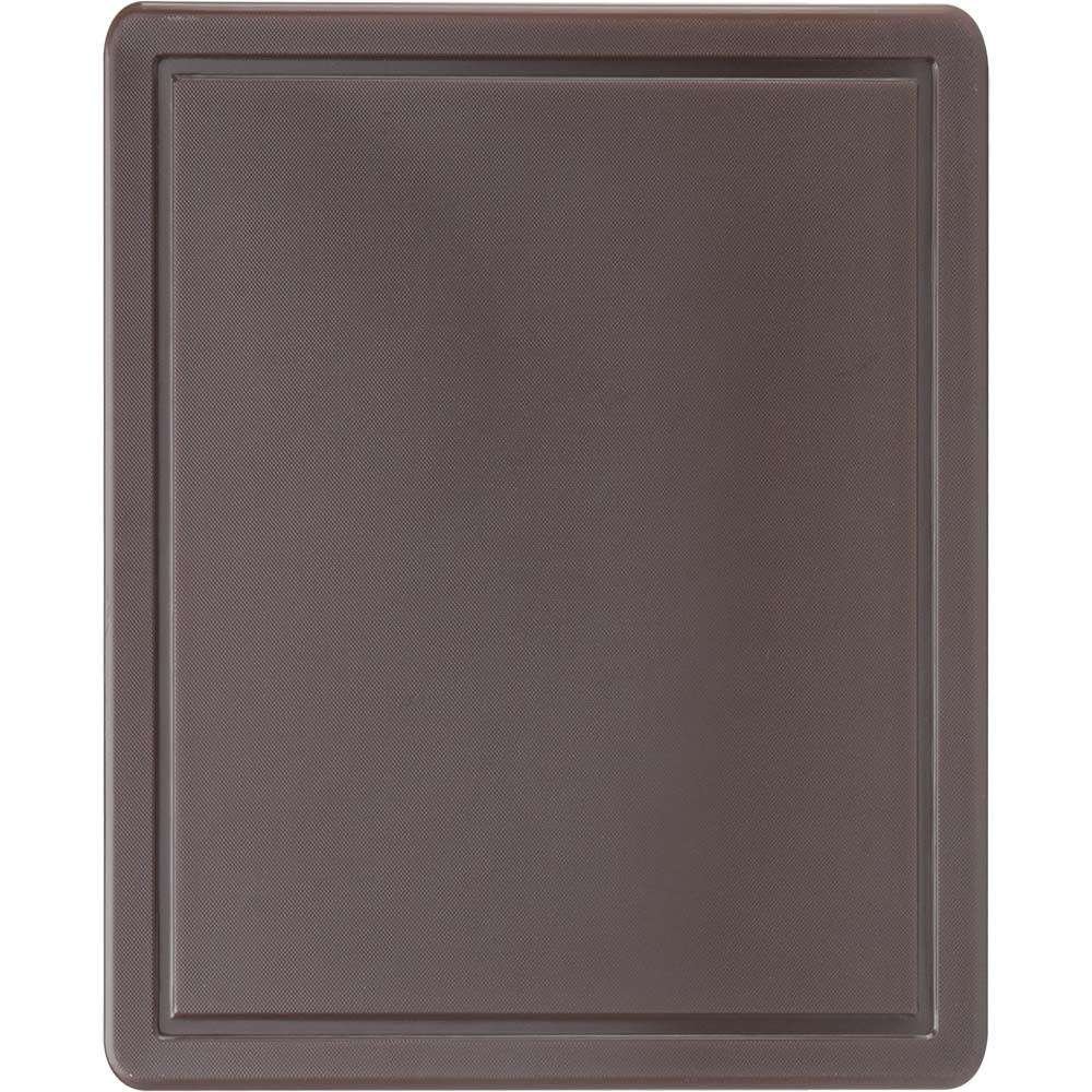 Пластикова дошка виконана розміром 530х325х15 мм, відповідає міжнародним стандартам HACCP та має всі необхідні сертифікати. Згідно з кольоровим кодуванням прийнятим в харчовій галузі коричнева кухонна дошка застосовується для нарізки вареного м`яса та ковбаси. Вона ударостійка, виготовлена з урахуванням щоденного використання, оснащена антиковзаючими стопами, можна мити в посудомийній машині, що полегшує догляд за ним.