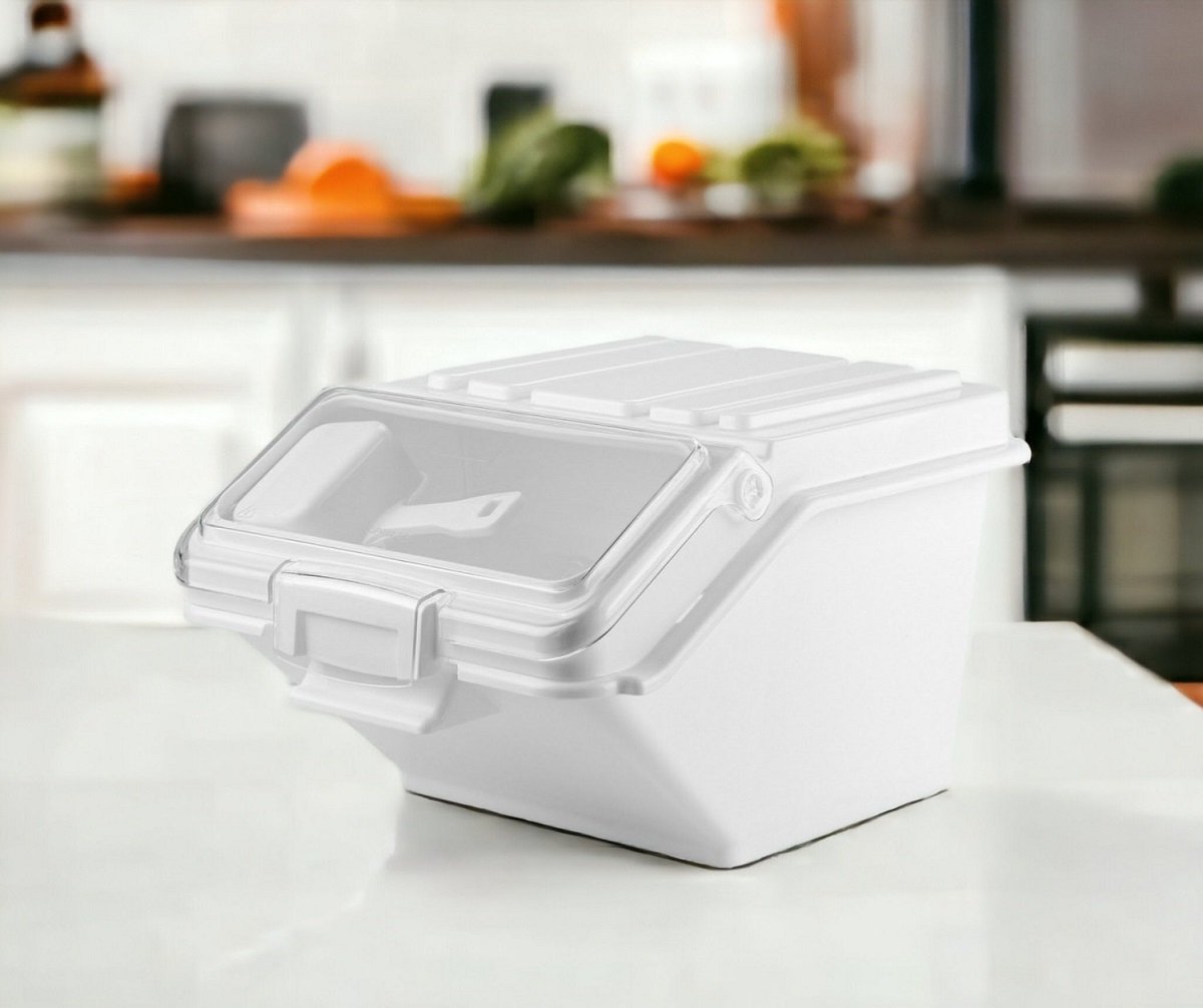 Изготовлен из полипропилена (прозрачная крышка из поликарбоната). Предназначен для хранения и растаривания различных сыпучих продуктов. Конструкция контейнеров позволяет размещать их вертикально друг на друге. Прозрачная крышка в комплекте позволяет видеть, какой продукт находится в контейнере и его заполненность.