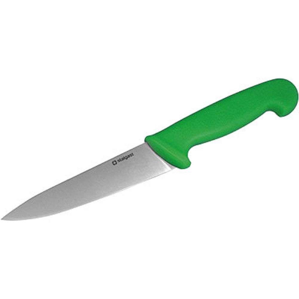 Ніж кухонний Stalgast 281152 відноситься до сегменту професійного кухонного інвентарю для кафе, ресторанів та інших закладів громадського харчування. Кухонний ніж універсальний та призначений для різних видів кулінарних робіт. З його допомогою можна почистити овочі та фрукти, зробити нарізку м`ясної та рибної гастрономії, розрізати хлібобулочні вироби. Одна з головних переваг ножів Stalgast — це дуже гостре і міцне лезо, яке виконане з високоякісної нержавіючої сталі X50CrMoV15.