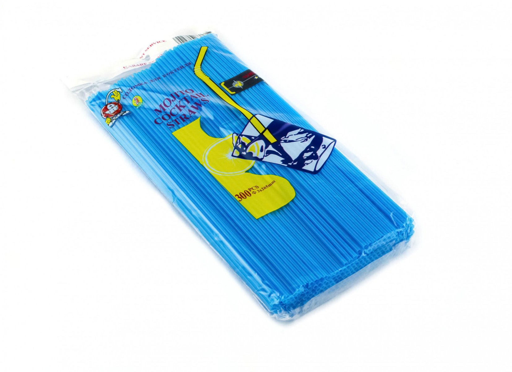 Трубочка для коктейля круглая голубая 3×265 мм 300 шт