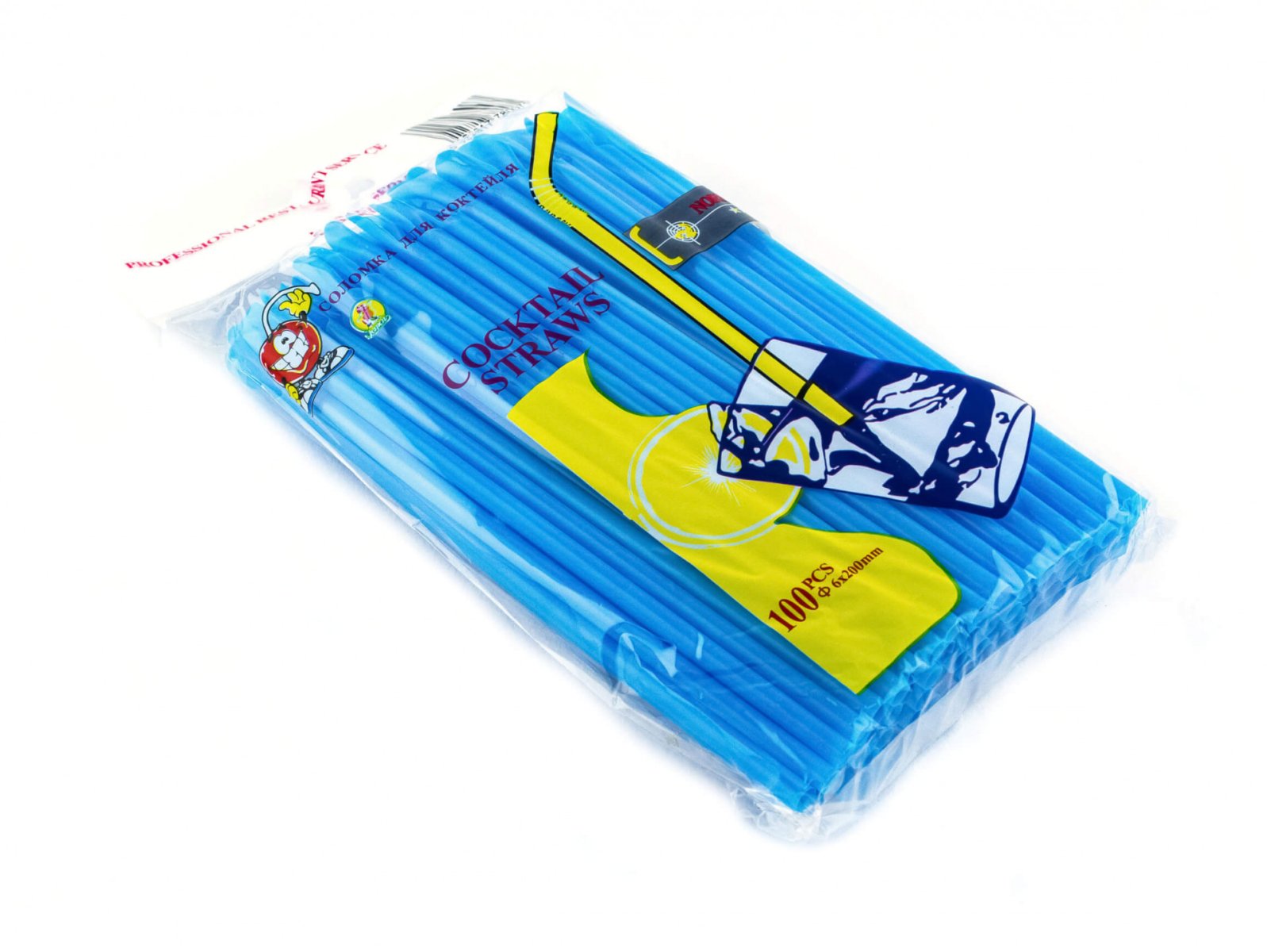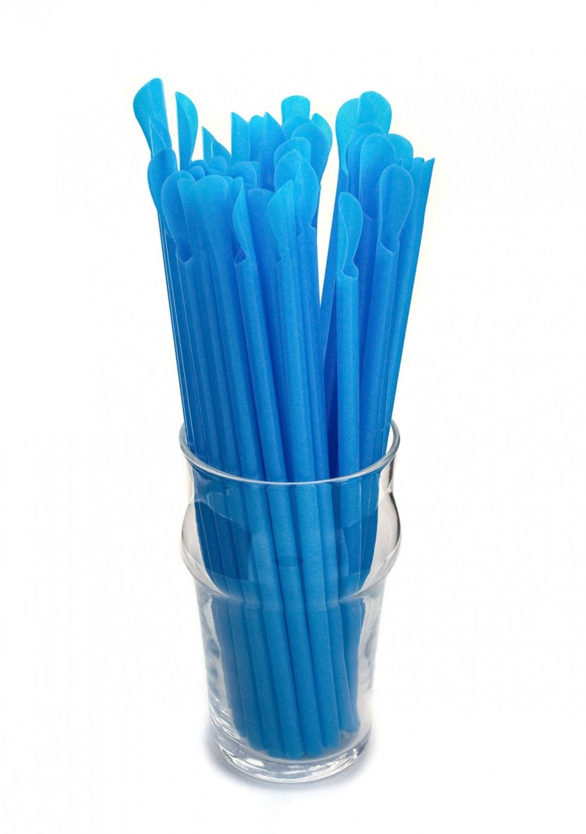 Трубочка для коктейля с лопаткой голубая 6×200 мм 100 шт