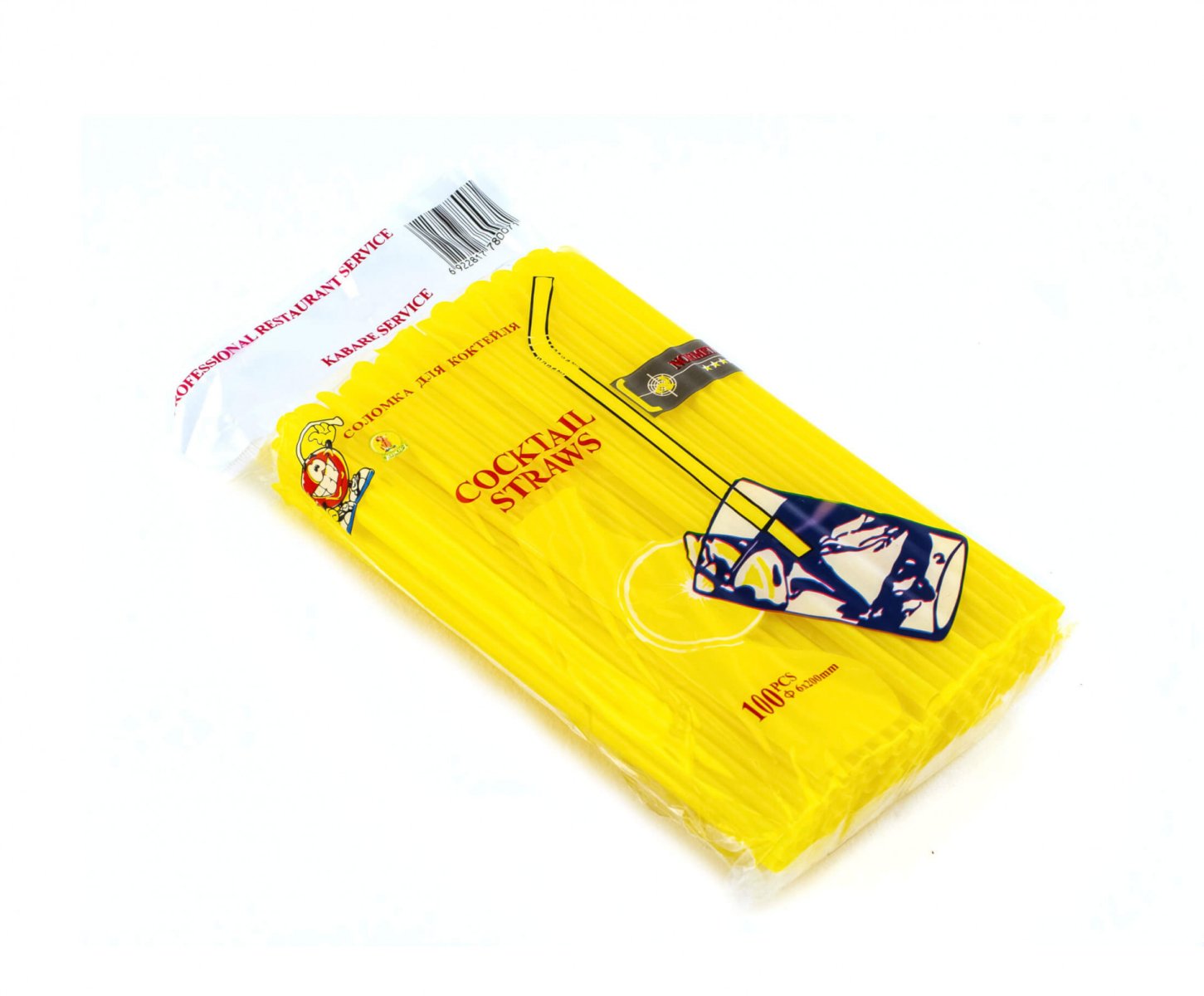 Трубочка для коктейля с лопаткой жёлтая 6×200 мм 100 шт