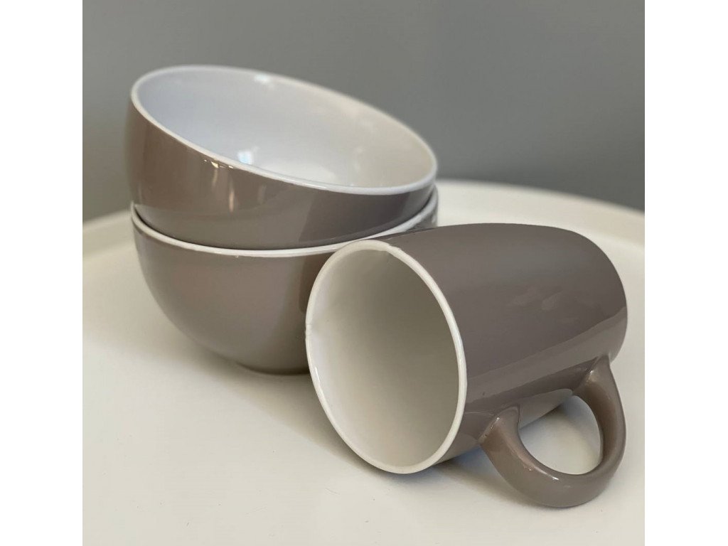 Керамический бежево-белый салатник диаметром 14 см. Можно мыть в посудомоечной машине и использовать в микроволновке.