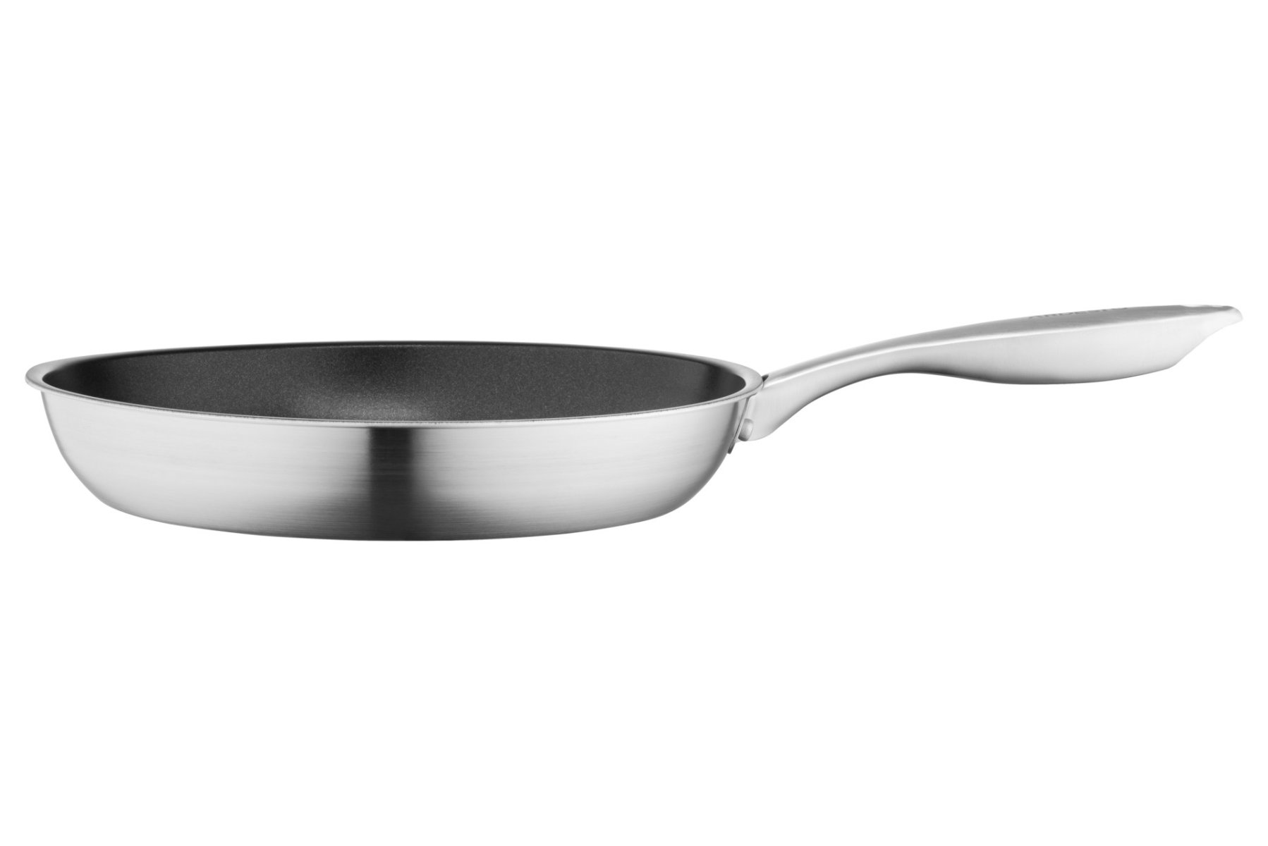 Сковорода з нержавіючої сталі має протипригарне покриття чорного кольору із захисною насічкою. Діаметр моделі складає 28 см. За висоти 5 см сковорода має однакову товщину бічних стінок і дна – 2 мм. Універсальність моделі зумовлена широкою сумісністю з різними видами плит: газовими, електричними, склокерамічними, індукційними й галогенними. До того ж її можна мити в посудомийній машині.