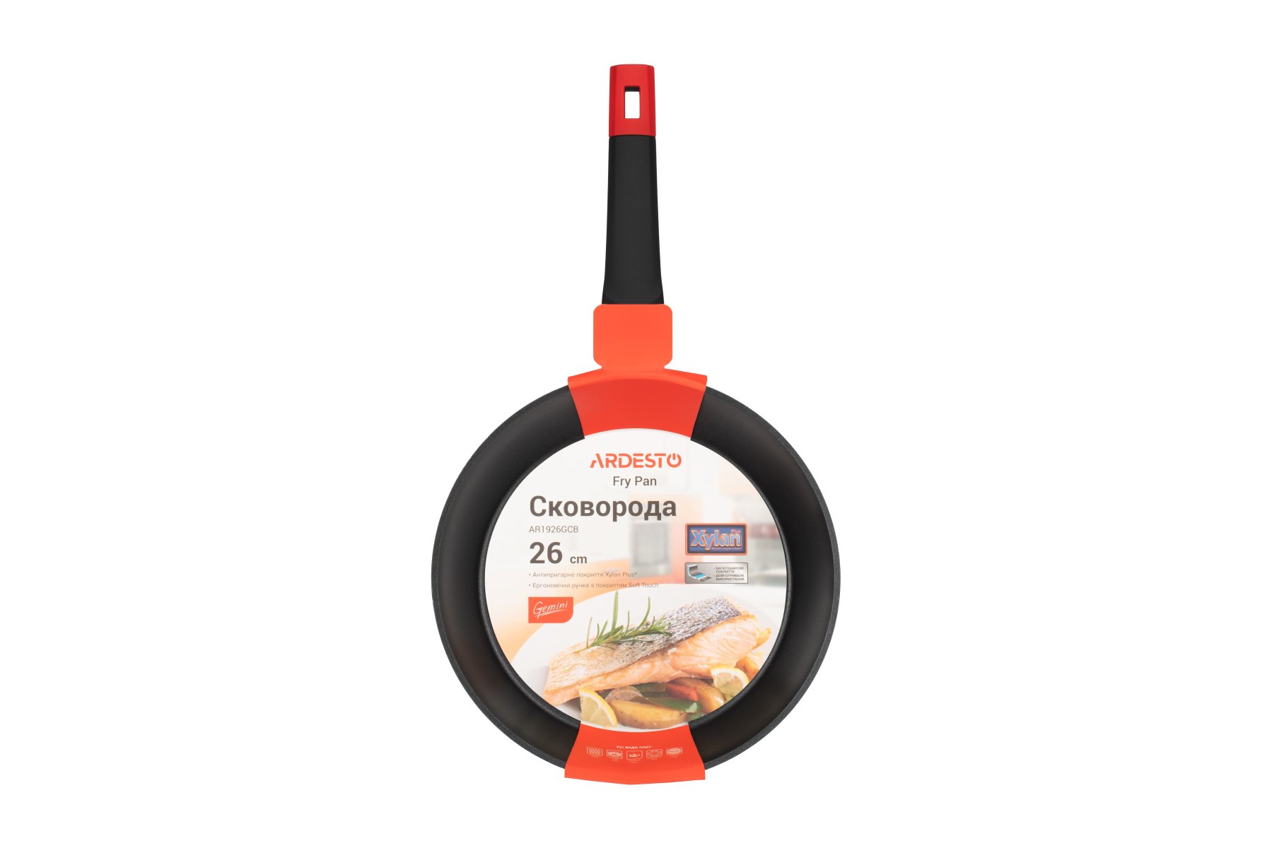 Чорну сковороду діаметром 26 см виготовлено з кованого алюмінію та оснащено покриттям Xylan Plus, що має високі антипригарні показники, є стійким до механічних пошкоджень. Висота стінок сковороди – 48 мм, товщина – 2,6/4 мм, товщина дна – 2,6 мм. Ручку вкрито покриттям Soft-touch. Сковороду можна використовувати на газових, електричних, склокерамічних, індукційних та галогенних плитах і не можна мити в посудомийній машині.