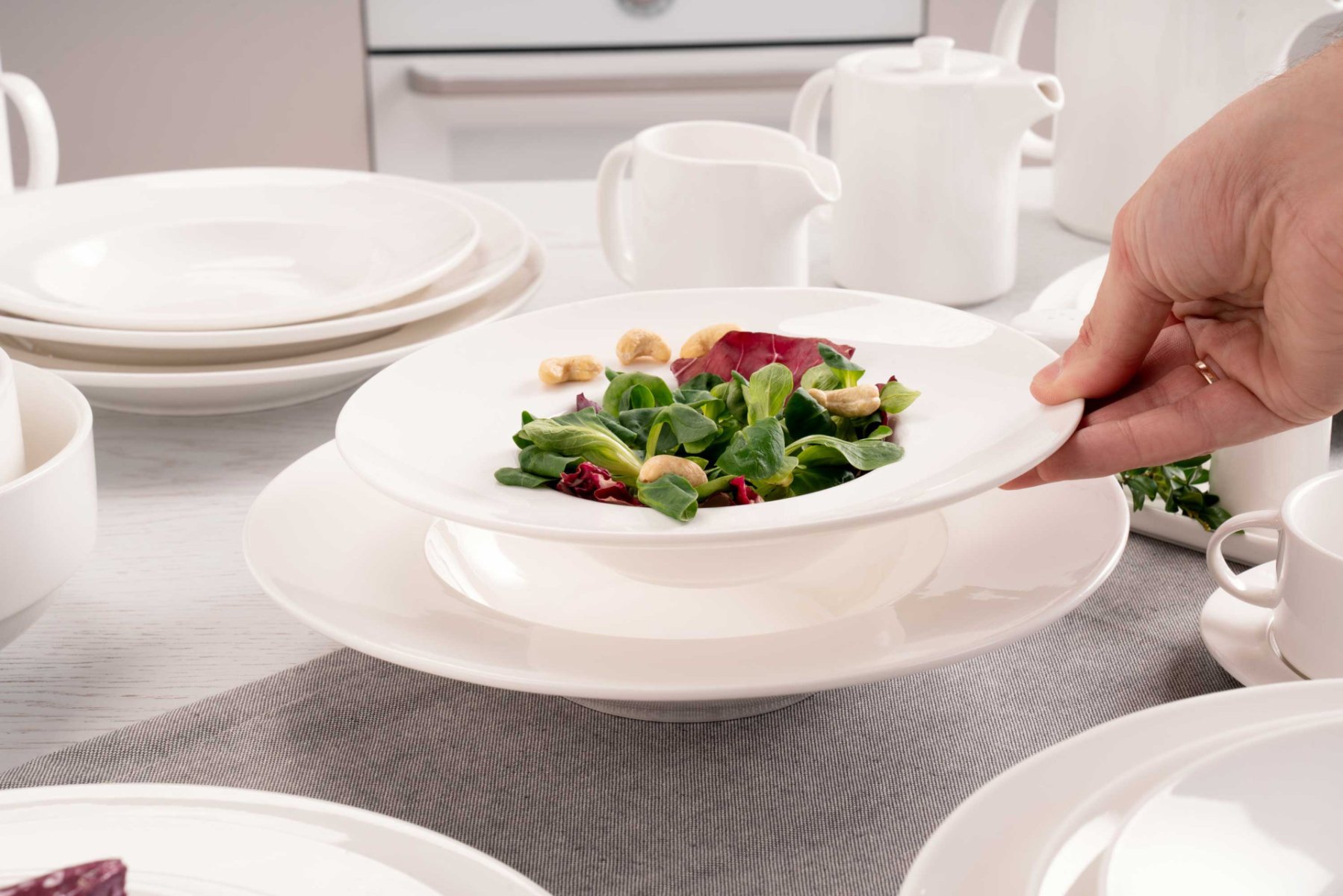 Порцеляна може створити як домашній затишок у повсякденному житті, так і урочисту атмосферу в найвишуканішому ресторані. Колекції з білої порцеляни довго зберігають вигляд, підкреслюють страву та дають змогу поєднувати різні за дизайном і призначенням предмети.