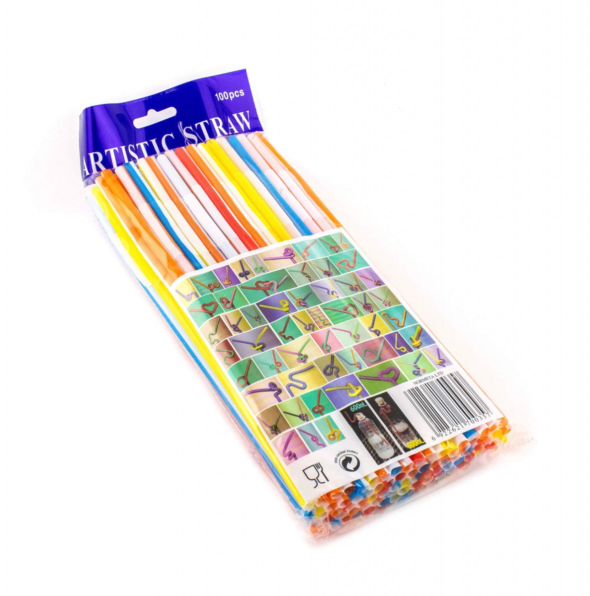 Трубочка для коктейлю кругла з гофрою подвійний колір 6×260 мм 100 шт
