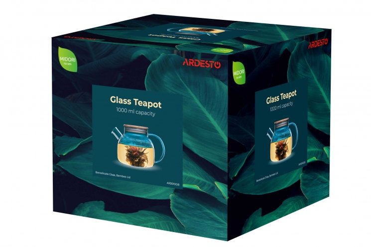 Заварник Ardesto Midori, 1000 мл, боросилікатне скло, бамбук